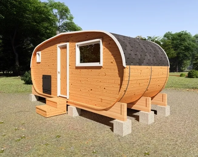 2. Для установки не нужна особая подготовка. Баню-бочку можно установить на заранее выровненную поверхность. Главное - обеспечить проветриваемое пространство между местом установки и полом.