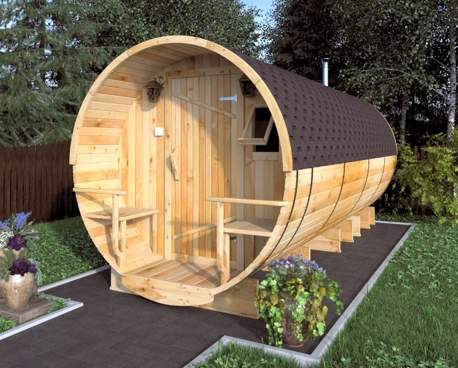 Банная конструкция в виде бочки стала популярной не так давно, но уже за такое короткое время успела завоевать к себе симпатию по всему миру. Баню-бочку можно установить на небольшом участке, а при желании потом ее перевезти, если возникла такая необходимость. Или взять такую круглую парилку с собой на рыбалку, охоту, в лес, чтобы отдых был полезным и комфортным. Круглую парилку можно использовать не только по прямому назначению, но и в качестве летней кухни или кемпинг-домика.