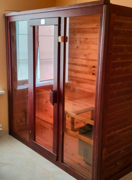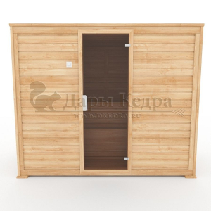 Это специально оборудованная готовая деревянная кабина для сухого и влажного парения. Электропечь нагревает пространство внутри и позволяет сбрызгивать камни водой, слегка увлажняя воздух. Такая процедура позволяет избежать перегрева. Сауна обшита снаружи и внутри кедровой вагонкой и имеет теплоизоляционный слой. Финская сауна с электропечью подойдет, как для домашнего использования, так и для коммерции. Доставляется в разборном виде щитами, собирается по инструкции с помощью шуруповёрта.