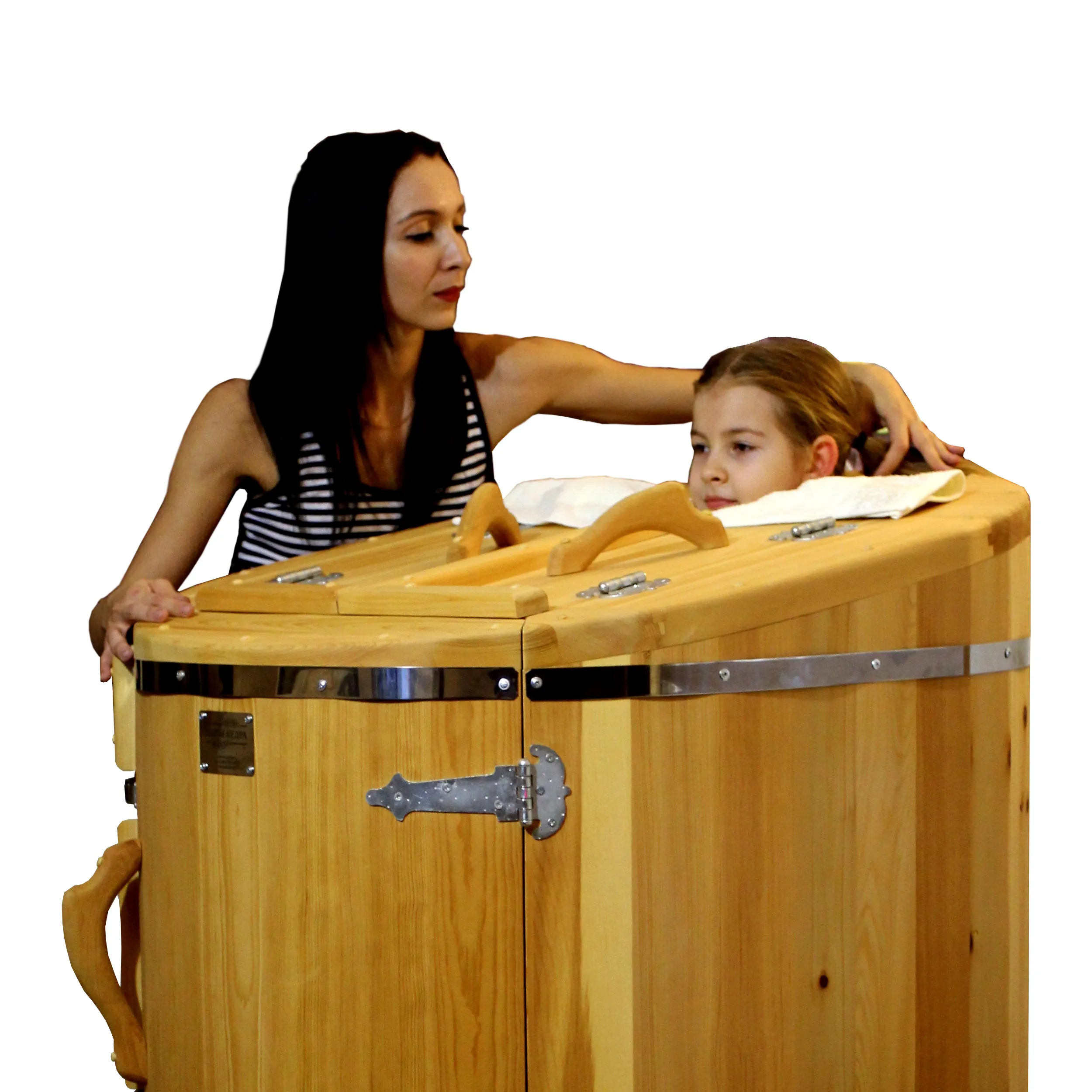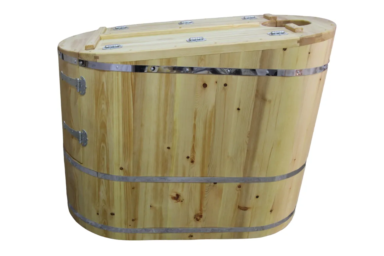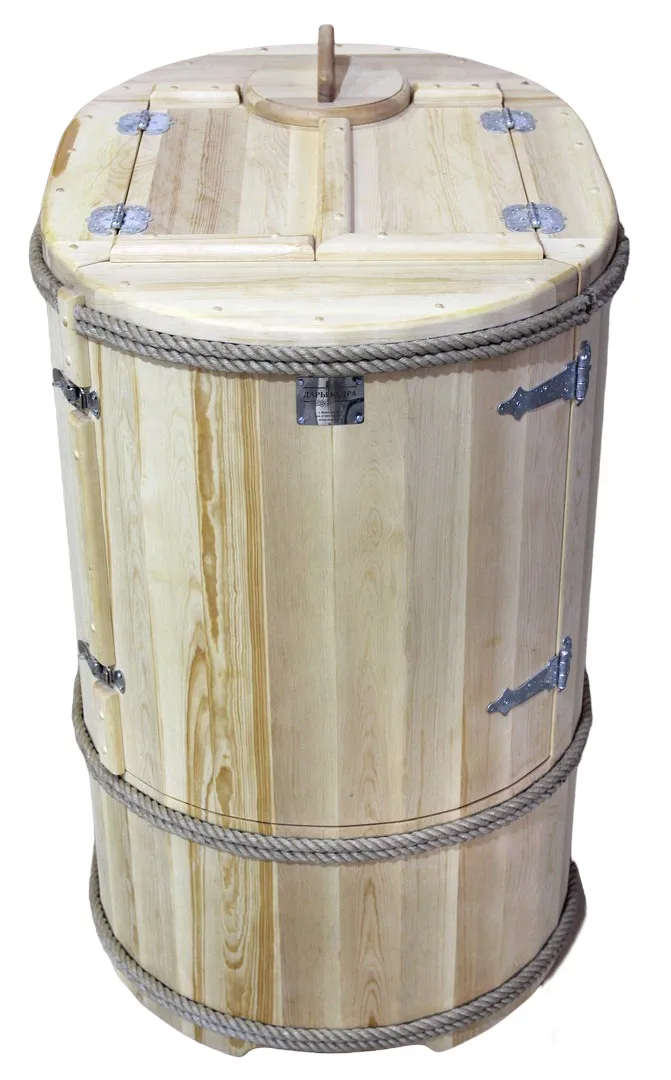 Овальная фитобочка из кедра - это мини парная, которую можно использовать не только в спа-салонах, но и дома. Овальная модель более просторна и удобна в использовании. Толщина стенок составляет 40-45 мм, что позволяет увеличить срок службы изделия. Верхний скос делает положение головы более комфортным и улучшает обзор. Она оборудована откидными створками, дверцей и отверстием для головы. Во время парения человек сидит внутри кедровой бочки, а голова находится снаружи. Благодаря этому исключается возможность перегрева. Подлокотники из кедра, встроенные ручки на створках и двери делают эксплуатацию более удобной.