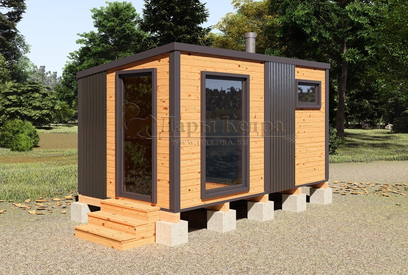Внутреннее пространство, несмотря на компактность, продумано до мелочей. Парилка, отделанная натуральным кедром и оснащенная современной печью, дарит мягкий и обволакивающий пар. Зона отдыха с лаконичной мебелью приглашает расслабиться и насладиться моментом. Большие окна наполняют помещение естественным светом, создавая ощущение простора и единения с природой.