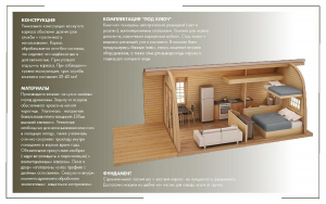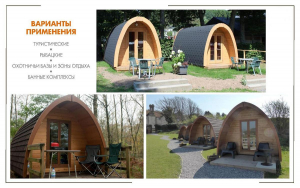 Кемпинг дом изготовлен из хвойных пород древесины. Кровля из мягкой черепицы обеспечивают защиту от осадков.