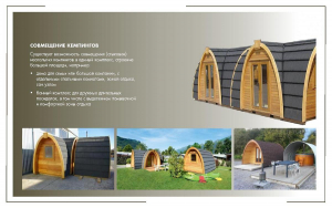 Такой кемпинг дом удобное и практичное решение для дачного использования или обустройства загородных баз отдыха. Увеличенные размеры и боковой вход со стеклянной дверью позволяют зонировать внутреннее пространство помещения. Домик включает в себя: