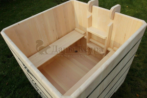 Небольшой подиум из кедра с двумя ступенями, отлично подойдет для купелей и ванн небольшой высоты - 1000 мм.